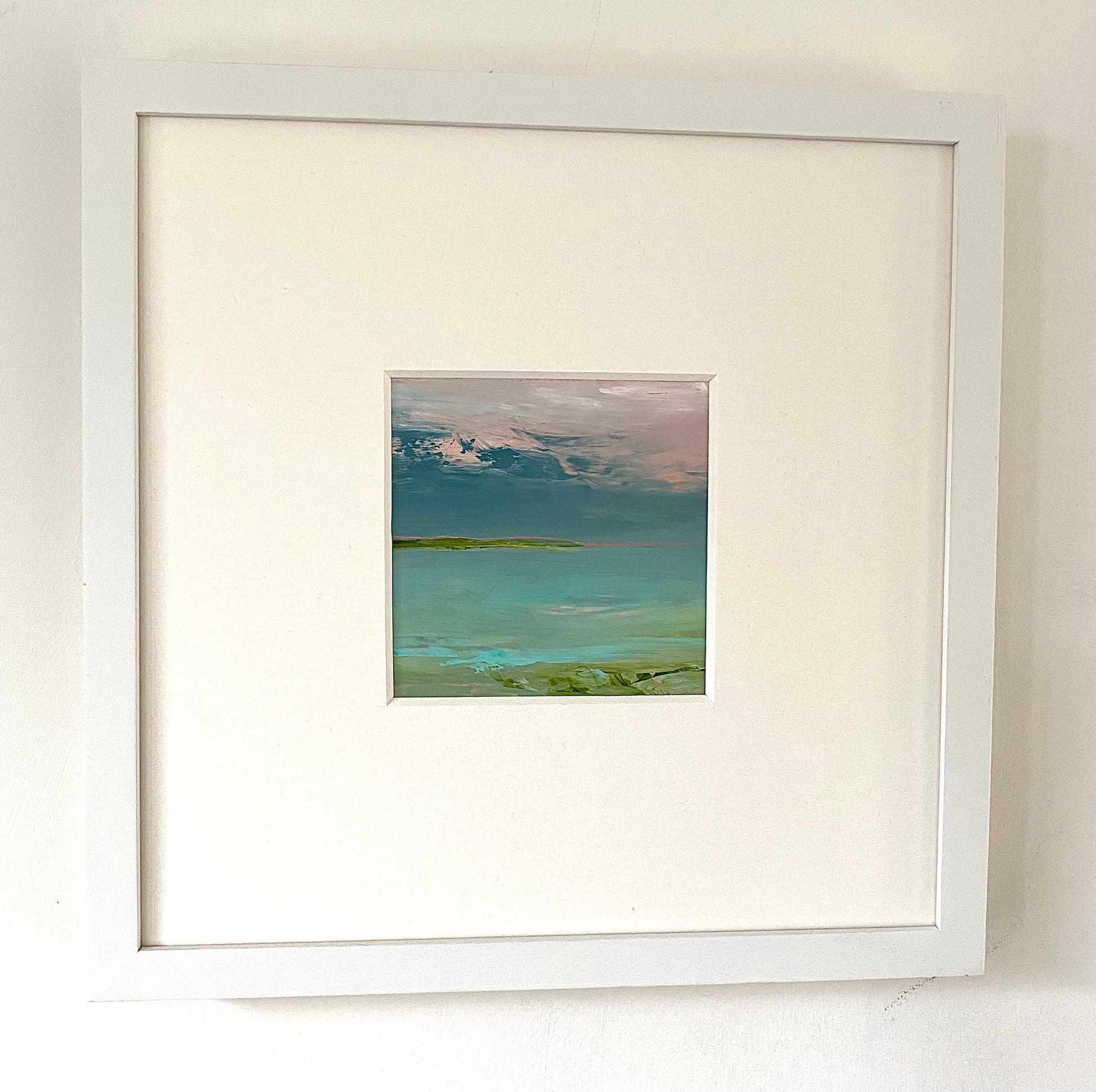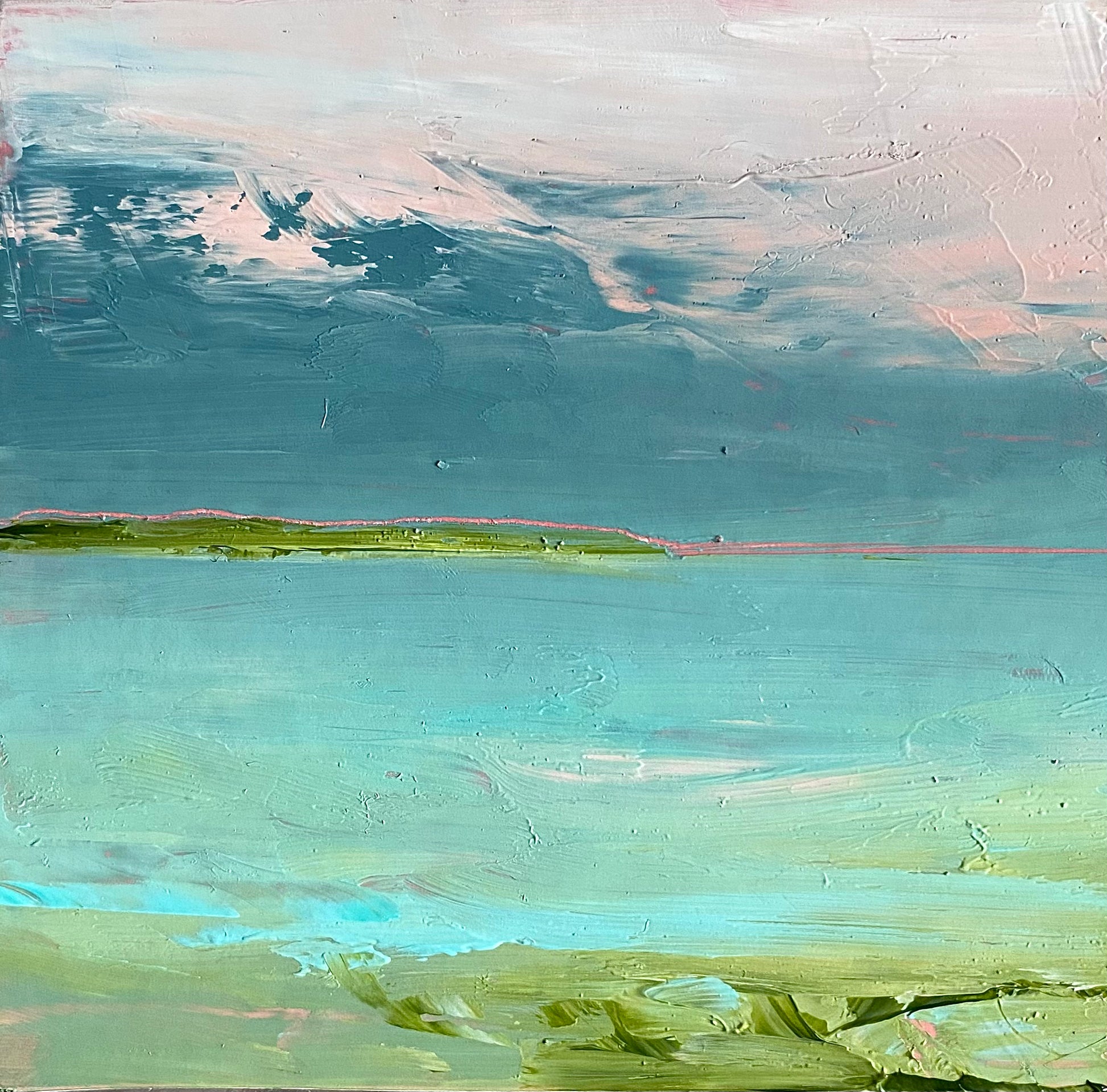 Layered shades of blue and teal reflecting the calm and cool depths of a coastal valley.
